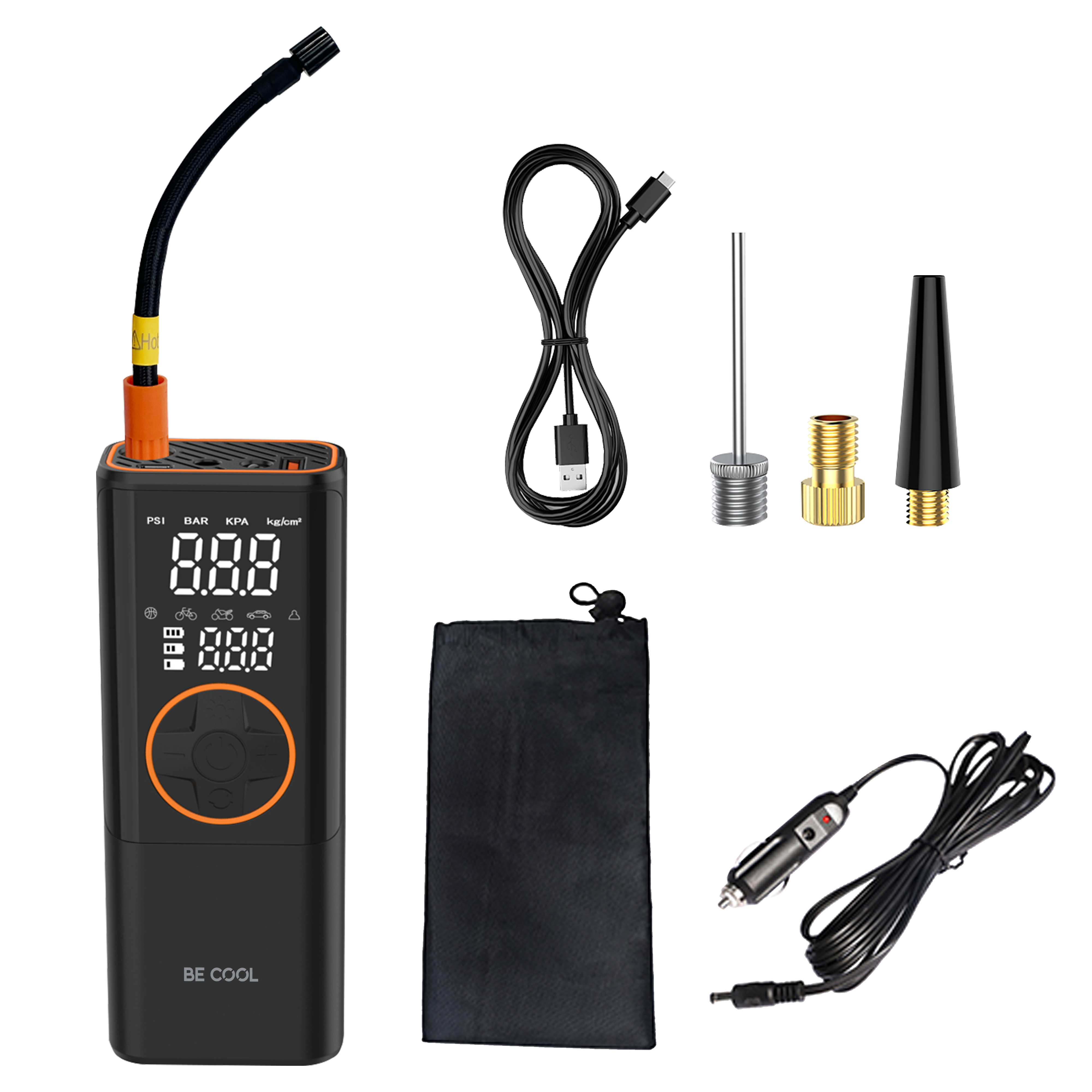 Dank der integrierten LED-Lichtfunktion mit drei einstellbaren Modi (Normal, SOS, Blinklicht) können Sie die Pumpe auch bei Dunkelheit sicher und flexibel verwenden. Die 4 umschaltbaren Einheiten (PSI, KPA, BAR, KG/CM²) und die 5 wählbaren Modi (Auto, Motorrad, Fahrrad, Sportball, Manuell) ermöglichen eine schnelle und präzise Bedienung für verschiedene Anwendungen.