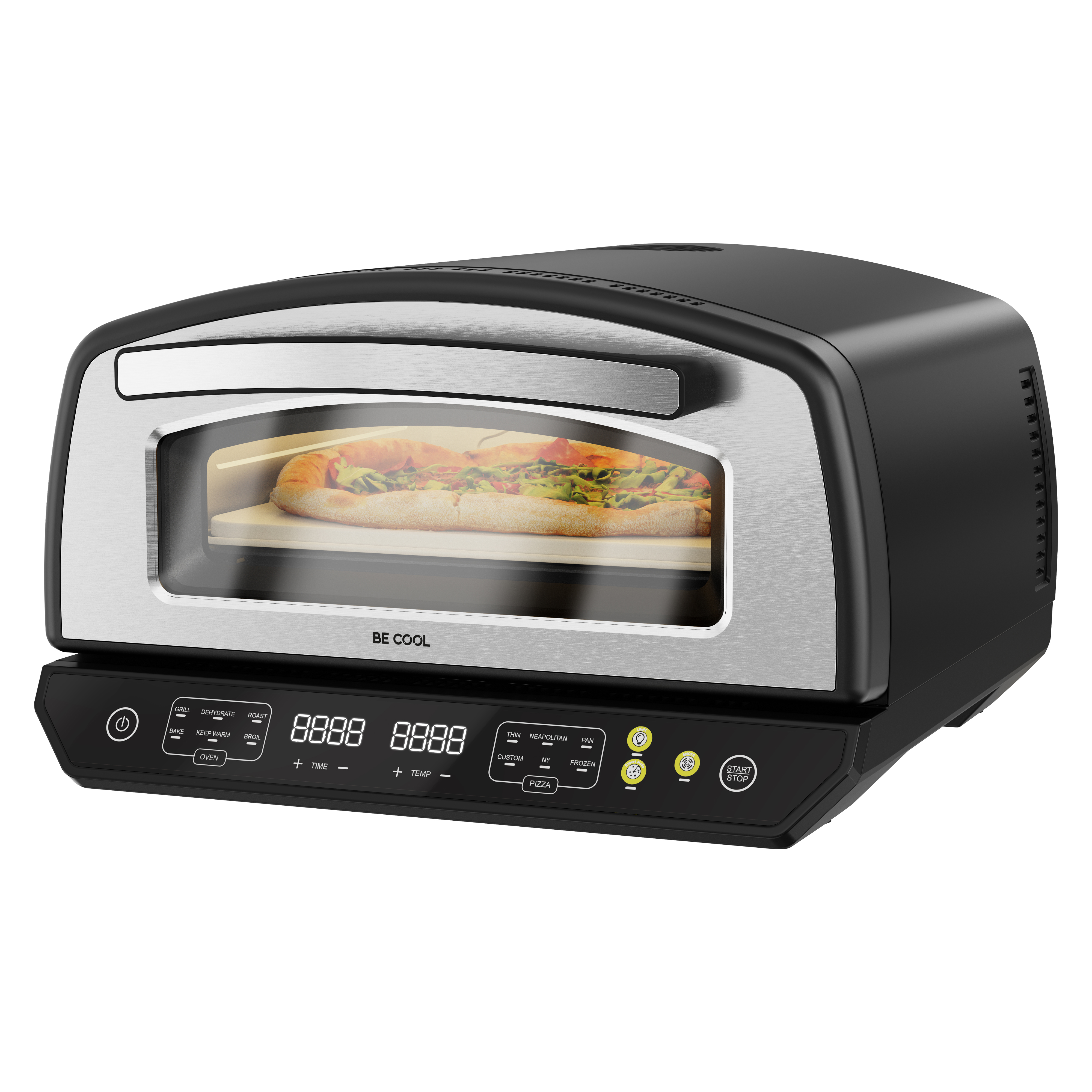 Dank der maximalen Leistung von 2000 Watt und der Ober- und Unterhitze wird deine Pizza gleichmäßig gebacken – außen knusprig, innen herrlich saftig. Der einstellbare Thermostat bis 450 °C macht auch echte neapolitanische Pizza möglich. Die digitale Steuerung mit beleuchtetem Touch-Bedienfeld und LED-Anzeige ermöglicht eine einfache und intuitive Bedienung.