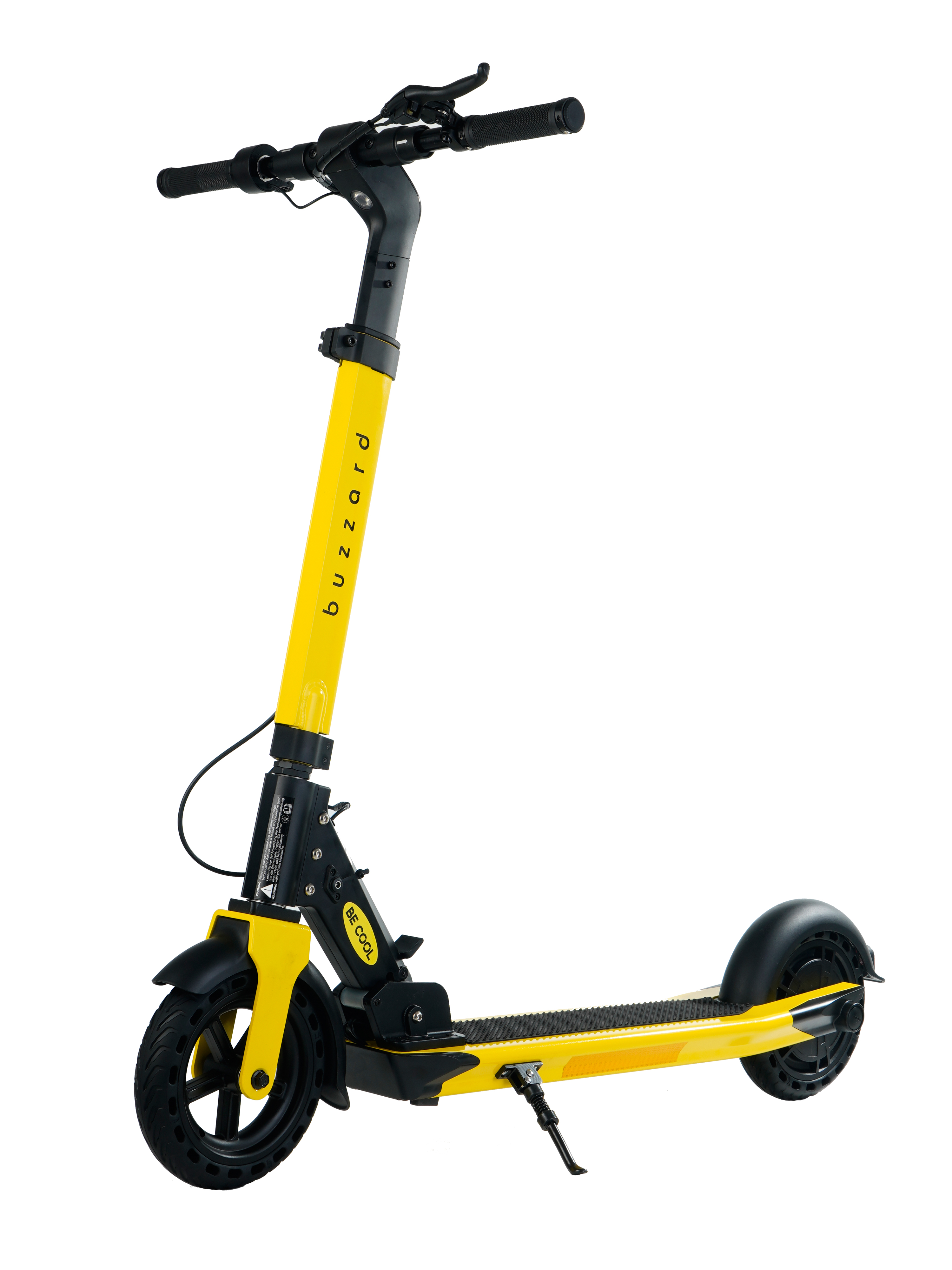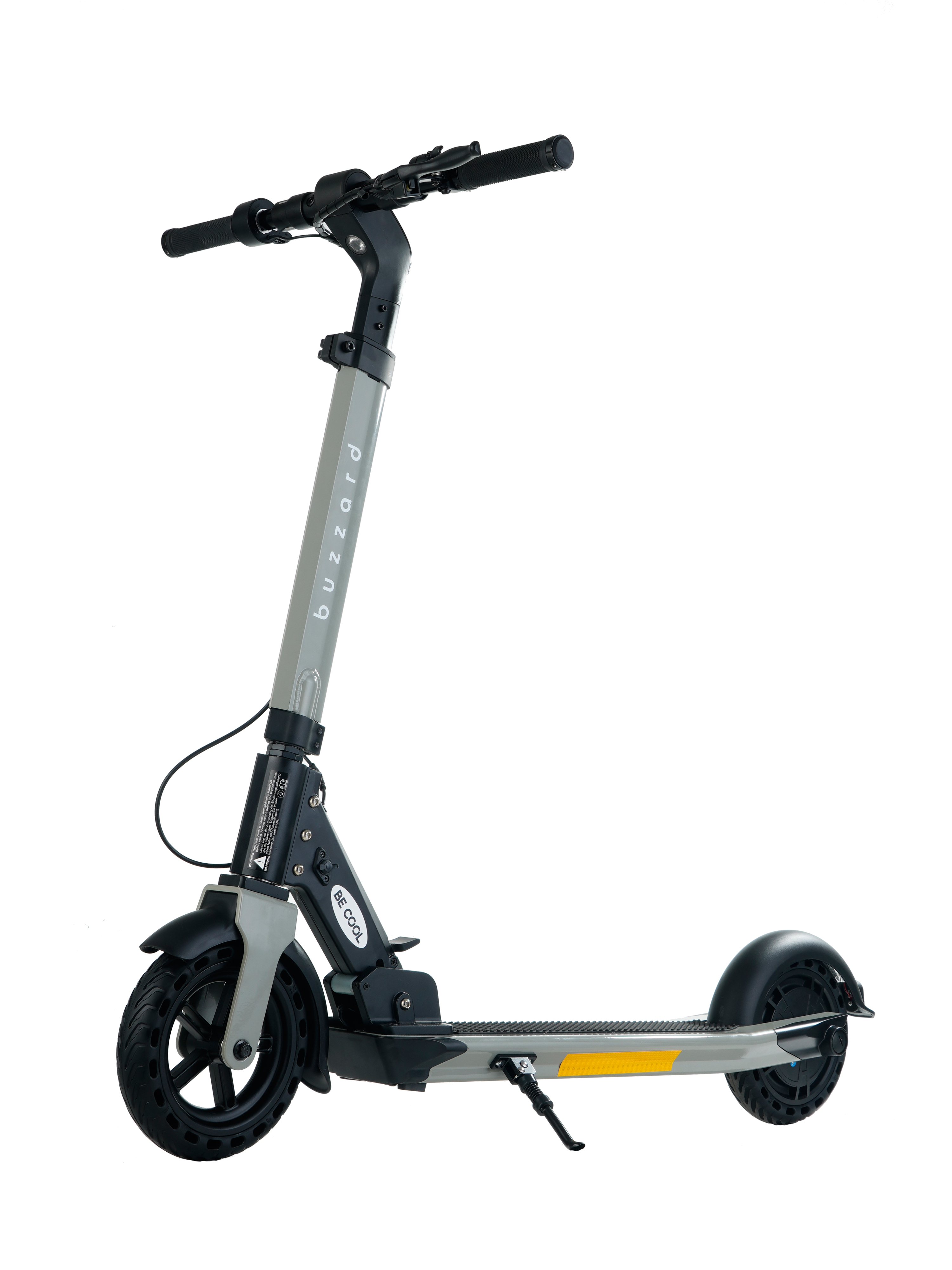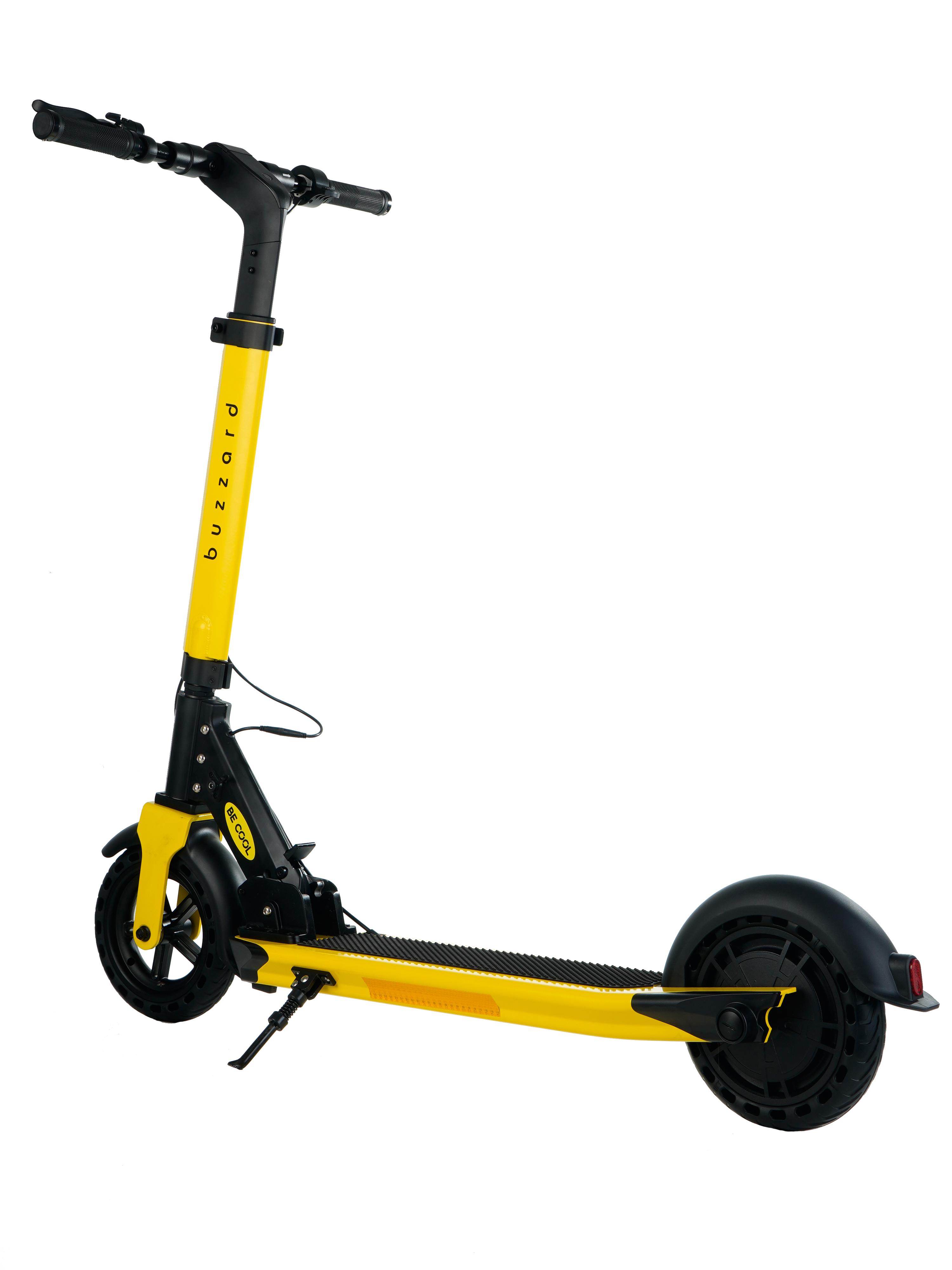 Die Kombination aus Komfort, Performance und Bequemlichkeit setzt neue Maßstäbe im Segment der leistungsstarken e-Scooter Mittelklasse. Die Auswahl von hochwertigen Komponenten machen den BUZZARD zum Langstreckenläufer. Sein leistungsstarker und wartungsfreier 350 Watt Nabenmotor überzeugt mit seinem soliden Antritt und er bringt Sie rasch auf die höchst zulässige Geschwindigkeit von 25 km/h. Egal, ob Sie nur wenige Minuten unterwegs sind oder die volle Reichweite ausnutzen wollen, das neue Batteriemanagementsystem überzeugt mit großartigen Werten. Der 15 Ah/36 Volt Akku bringt Sie bis zu 55 km weit.