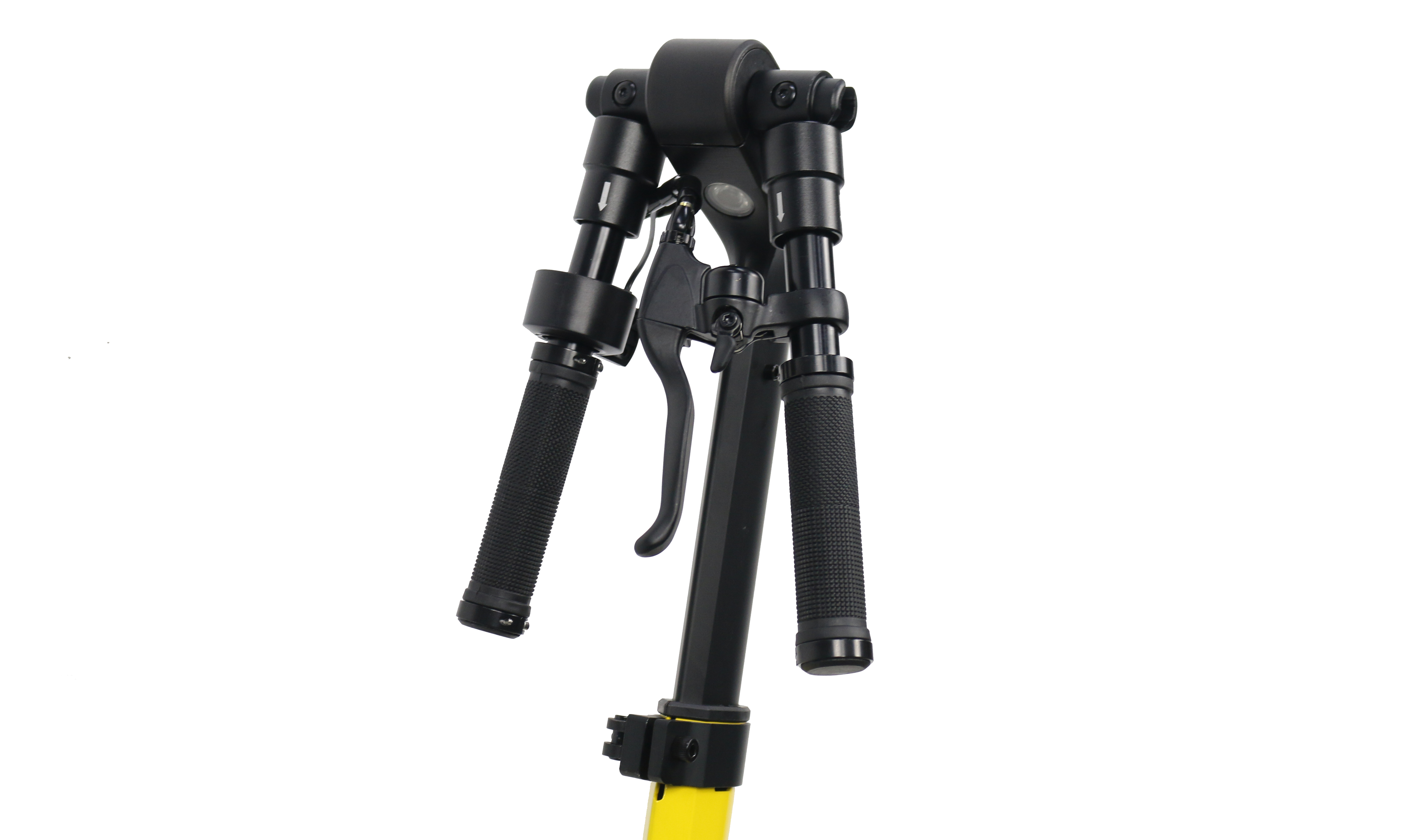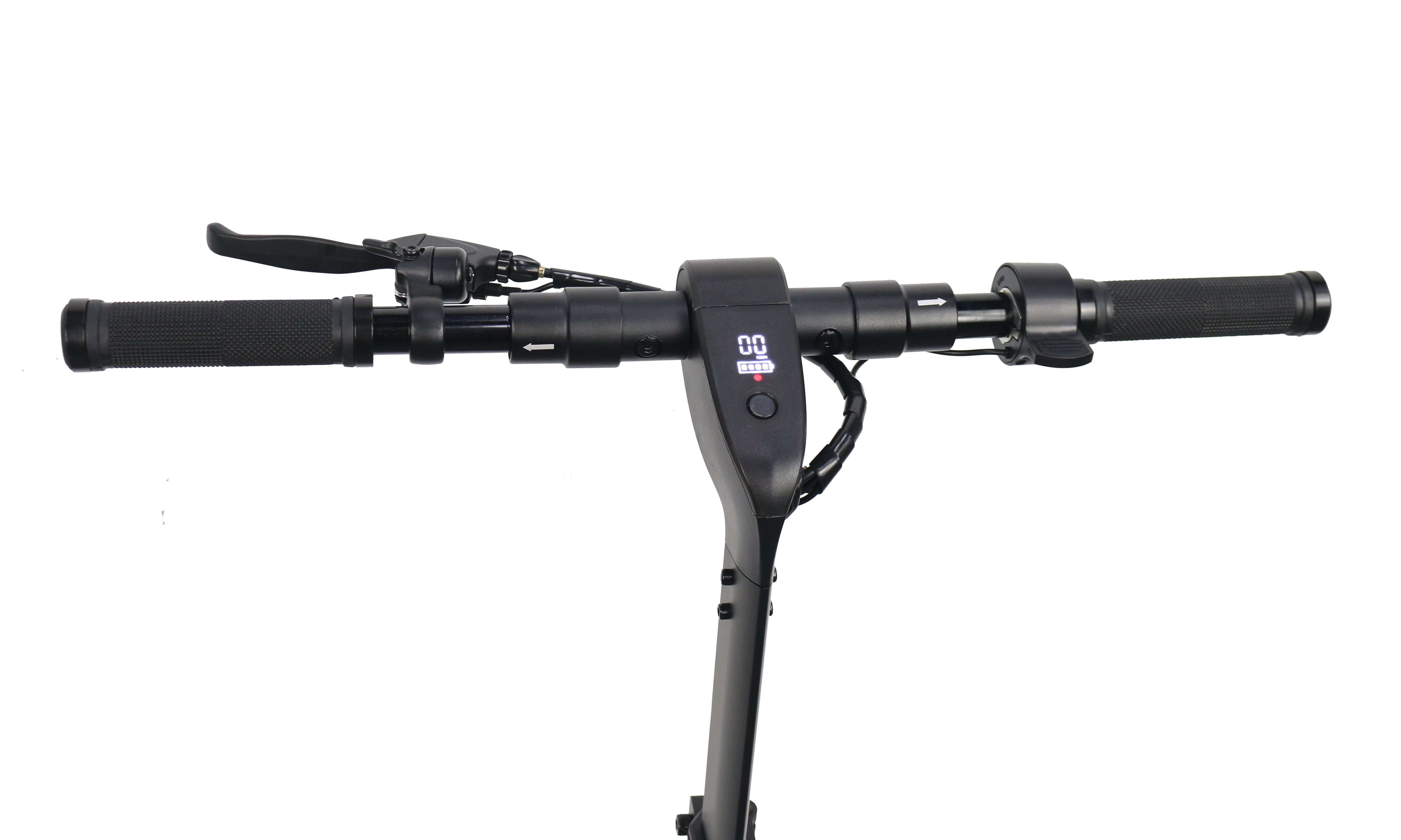 Das breite und tiefliegende Trittbrett bietet einen stabilen Stand bei jeder Fahrt. Der Scooter hat einen besonders breiten und höhenverstellbaren Lenker. Damit können lange Strecken bequem gemeistert werden. Dieser Lenker, wie auch der Scooter, lässt sich in Sekundenschnelle zusammenklappen - ohne zusätzlichem Werkzeug.
