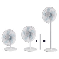 Der 3-in-1 Ventilator mit 40 cm Durchmesser bietet maximale Flexibilität – ob auf dem Tisch, auf dem Boden oder als klassischer Standventilator. Dank des entnehmbaren Standrohrs lässt sich die Höhe individuell zwischen 64 und 125 cm einstellen. Mit dem zusätzlichen Standrohr ist auch eine kompakte Höhe von 59 cm möglich – ideal für den Einsatz auf dem Schreibtisch oder Nachttisch.