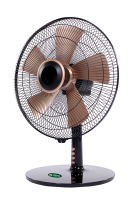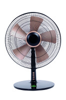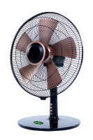 Der Ventilator besitzt einen extraflachen, runden Standfuß, mit dem ein sicherer Stand jederzeit gewährleistet ist. Die fünf rotgoldfarbenen Rotorblätter sorgen für einen leisen und gleichmäßigen Luftstrom.