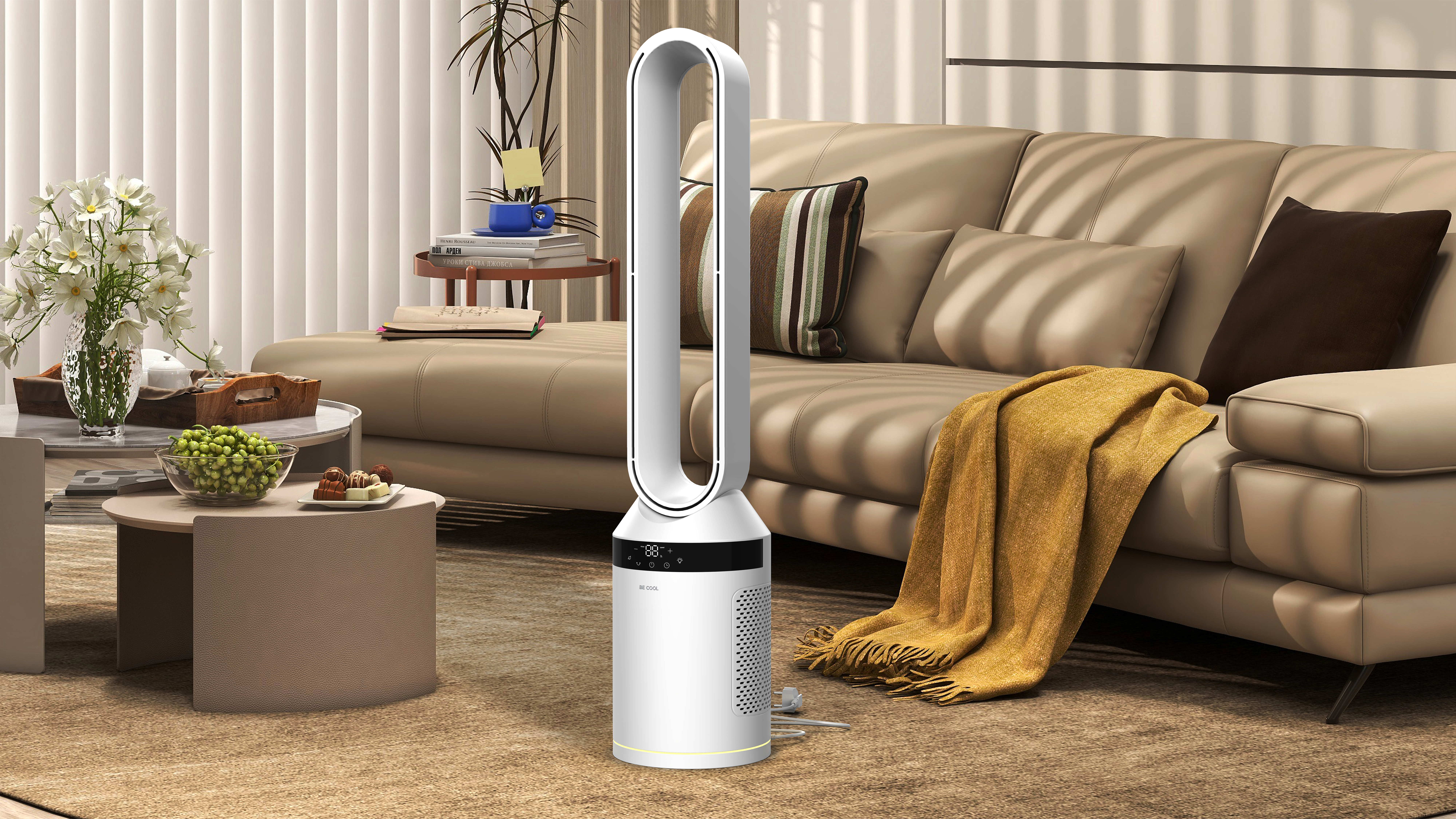 The rotorless tower fan ensures even air circulation in the room - without any classic rotor blades.