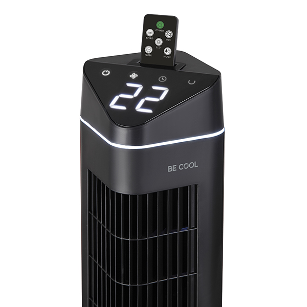 An integrated 12-hour timer enables automatic switch-off and supports efficient operation. The remote control supplied can be conveniently inserted and then stored in the separate compartment at the top of the fan.